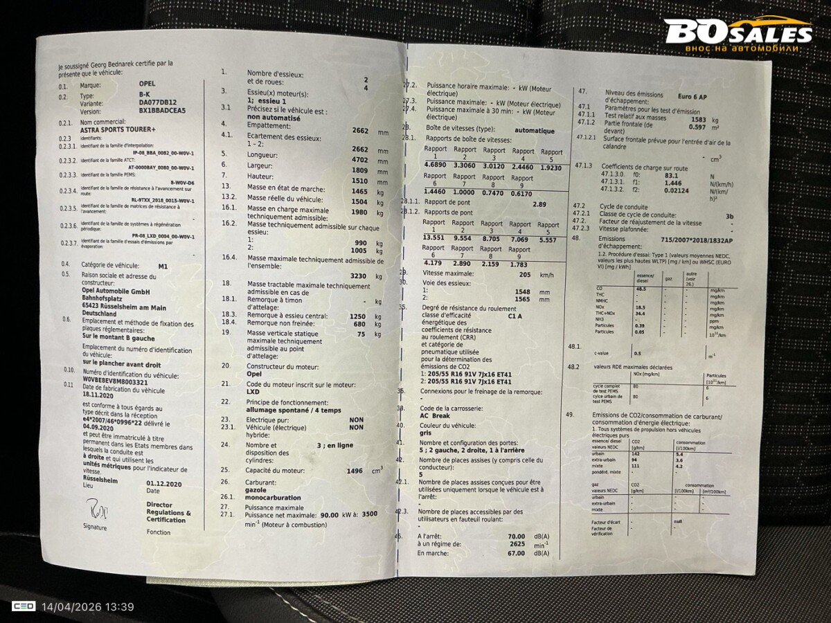 Opel Astra Sports Tourer 1.5 Elegance - Дизел - Автоматични - 122 Hp - 143.089 Km